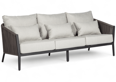 Maar de Apple Bee Bijou 3-zits loungebank is niet alleen visueel aantrekkelijk. Deze bank is ook gebouwd om het hele jaar door te worden genoten. Het rope vlechtwerk, gemaakt met waterbestendige vezels, is perfect bestand tegen regen en voelt tegelijkertijd zacht aan voor maximaal comfort.