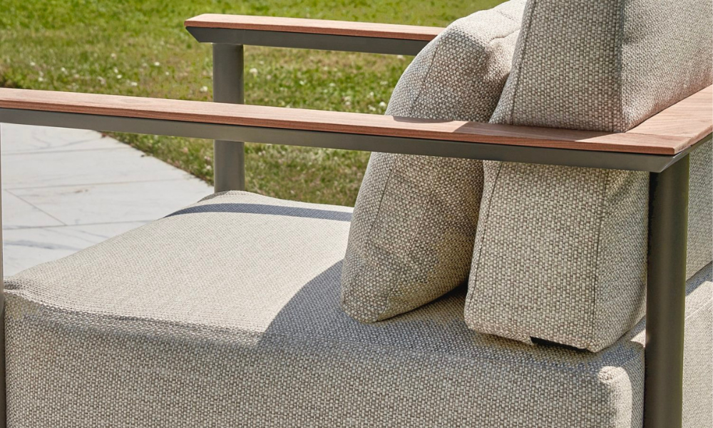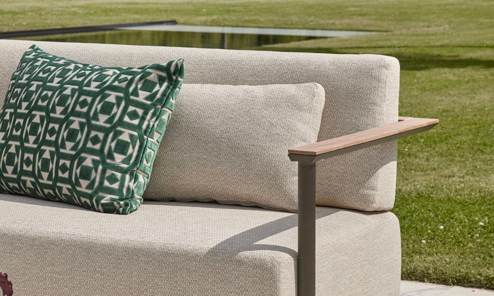 Het hart van de St. Lucia Collectie is het robuuste aluminium frame, dat zowel sterk als lichtgewicht is, en afgewerkt met een duurzame coating. Dit zorgt voor een lange levensduur en weerstand tegen de elementen. De leuningen zijn verfijnd ingelegd met teakhout, wat een warme, natuurlijke touch toevoegt aan de moderne uitstraling. Deze combinatie van materialen biedt een unieke balans tussen moderne elegantie en natuurlijke charme.