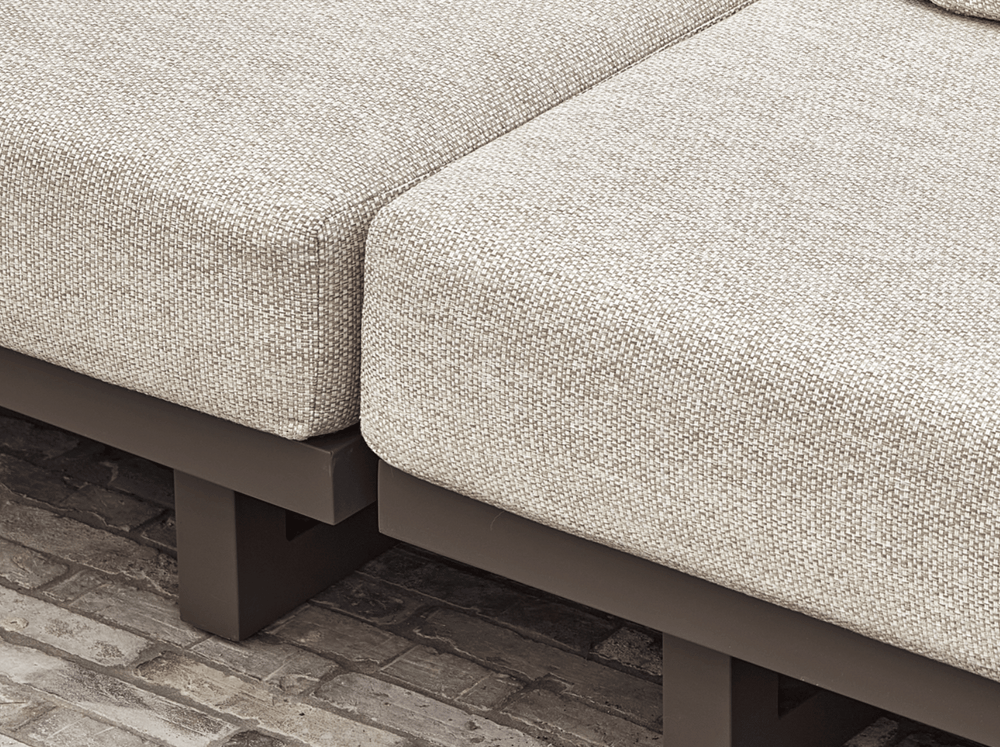 De gestoffeerde panelen geven de loungeset een luxe, chique uitstraling. Ze zijn gemaakt van weerbestendige buitenstof en eenvoudig los te maken voor reiniging.