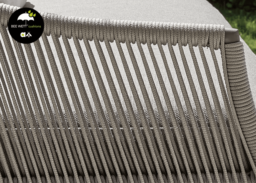 Maar de Apple Bee Bijou 2-zits loungebank is niet alleen visueel aantrekkelijk. Deze bank is ook gebouwd om het hele jaar door te worden genoten. Het rope vlechtwerk, gemaakt met waterbestendige vezels, is perfect bestand tegen regen en voelt tegelijkertijd zacht aan voor maximaal comfort.