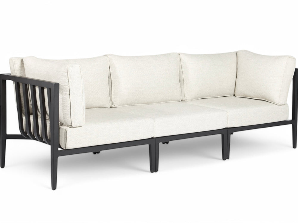 De Belito Daan loungebank met twee hoekstukken en één tussenstuk biedt een ruime en stijlvolle zitplek voor drie personen. Het strakke aluminium frame is lichtgewicht, roestvrij en onderhoudsvriendelijk, terwijl de all-weather kussens zorgen voor optimaal comfort. Met een lengte van 246 cm is deze bank een perfecte toevoeging aan elke tuin of terras.