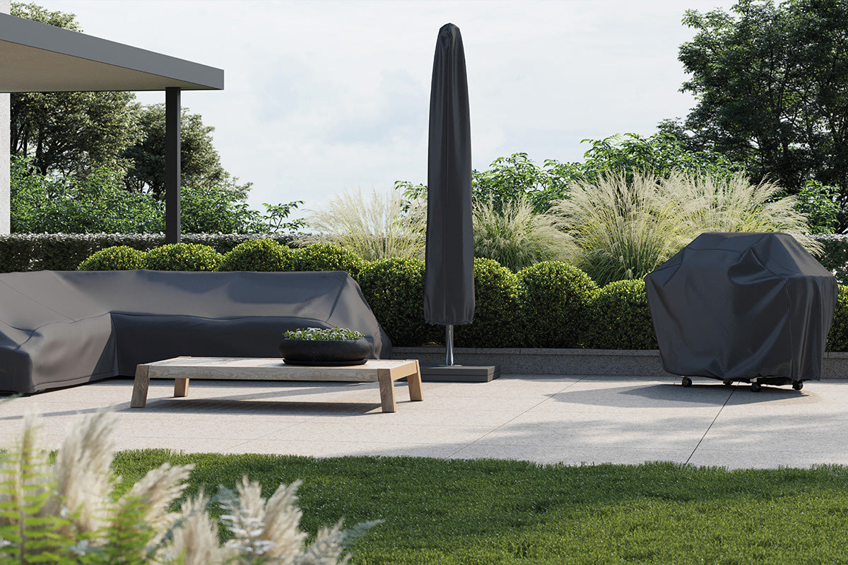 Wij adviseren om de parasolhoes alleen te gebruiken wanneer het parasoldoek volledig droog is. Het inklappen en afdekken van een vochtige parasol kan, ondanks het ademende membraan, leiden tot "het weer" (weerplekken) in het doek. Berg de parasol bij voorkeur in de winterperiode op in een droge garage of schuur voor een maximale levensduur.