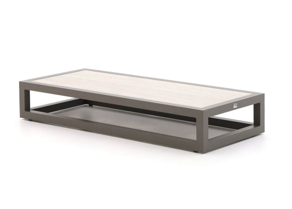 Het Taupe aluminium frame en de teakhouten leuningen zijn weerbestendig en onderhoudsvrij, voor jarenlang zorgeloos genieten met een warme, natuurlijke uitstraling.