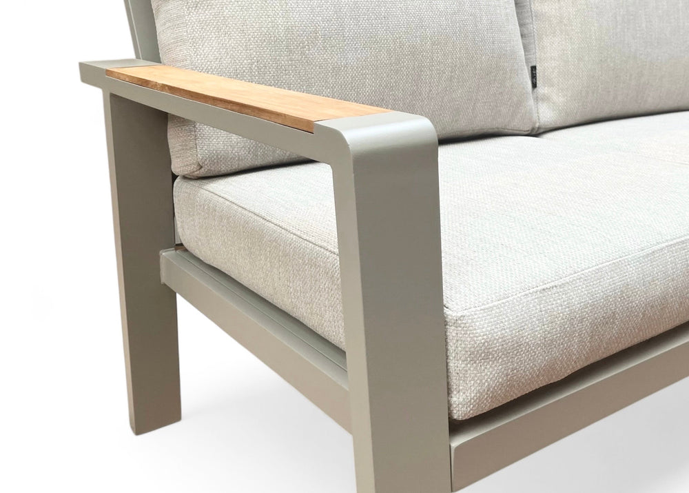 Aluminium frame met luxe teakhouten accenten.