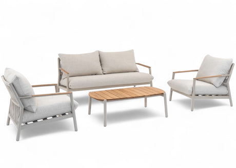 De Olive loungeset combineert hoogwaardig FSC® teakhout met een verfijnde Coastal finish. De set bestaat uit een ruime 3-zits loungebank, twee loungestoelen, een grote koffietafel en een kleine koffietafel. De comfortabele BEE WETT® all-weather kussens in de kleur Natural Oak zorgen voor een luxueuze uitstraling en ultiem zitcomfort.