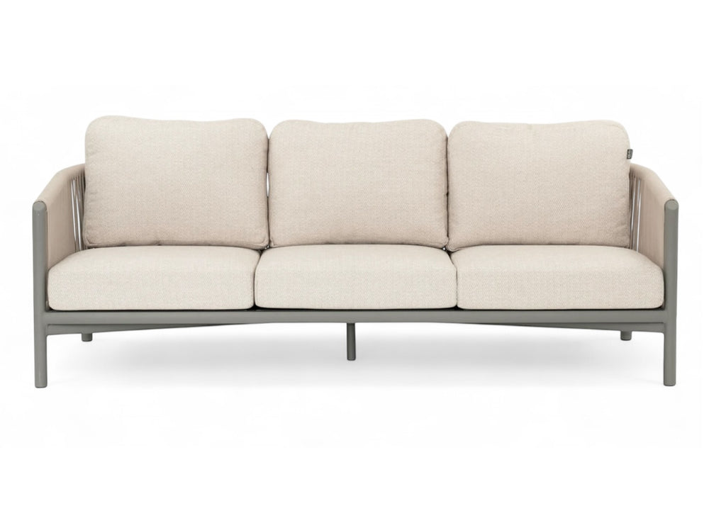 Het aluminium frame is omvlochten met outdoor textileen en is volledig weerbestendig en onderhoudsvrij. Zo geniet je jarenlang zorgeloos van comfort en een warme, natuurlijke uitstraling.