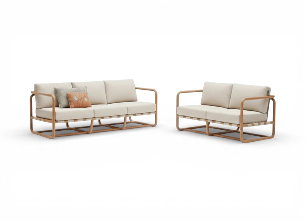 De Apple Bee Dolce loungeset in deze 2-delige bankenconfiguratie is de ultieme keuze voor wie houdt van een strakke, symmetrische en toch organische uitstraling op het terras. Deze set bestaat uit de twee belangrijkste basiselementen van de Dolce-serie: de royale 3-zits bank en de comfortabele 2-zits bank. Samen bieden zij een vorstelijke zitplaats aan 5 personen. Het iconische ontwerp met ronde vormen en hoogwaardig SVLK-gecertificeerd teakhout maakt deze set tot een tijdloze blikvanger in elke tuin of veranda.