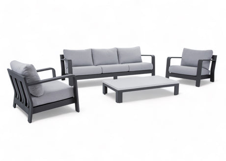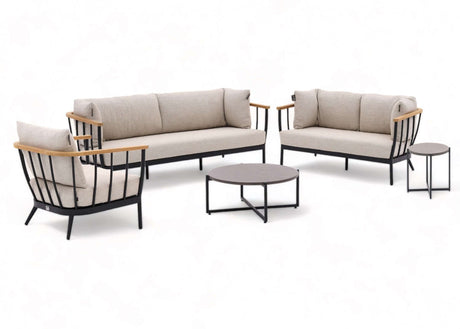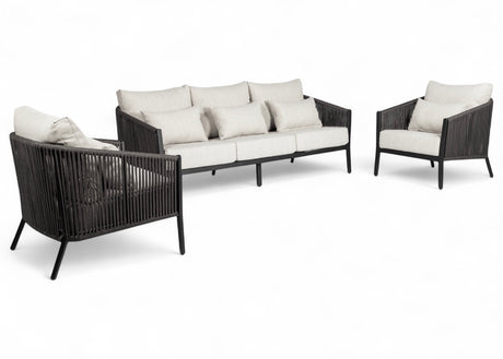 Ontdek de moderne en hoogwaardige Ouddorp loungeset van Belito. Deze set is razend populair dankzij het strakke matzwarte aluminium frame, het stijlvolle gebruik van rope (textileen) in de rugleuning, en all-weather kussens die het hele jaar door buiten kunnen blijven liggen. Het onderhoudsvrije ontwerp en de hoogwaardige materialen maken deze loungeset tot een duurzame keuze voor elke tuin.