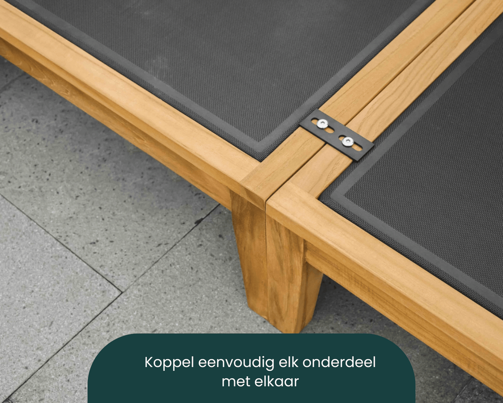 Dankzij het slimme koppelingssysteem pas je de set eenvoudig aan jouw wensen aan. Flexibel, stijlvol en op maat!
