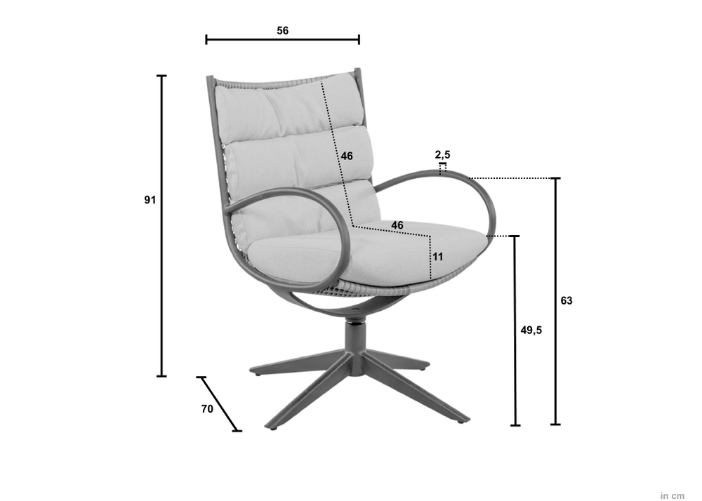 | Zithoogte (incl. kussen) | 49,5 cm (Ideale actieve eethoogte) |
