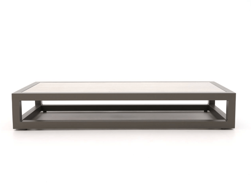 • 1 x Grote Santorini koffietafel (155 cm) – Voorzien van een hoogwaardig Travertino keramiek blad.