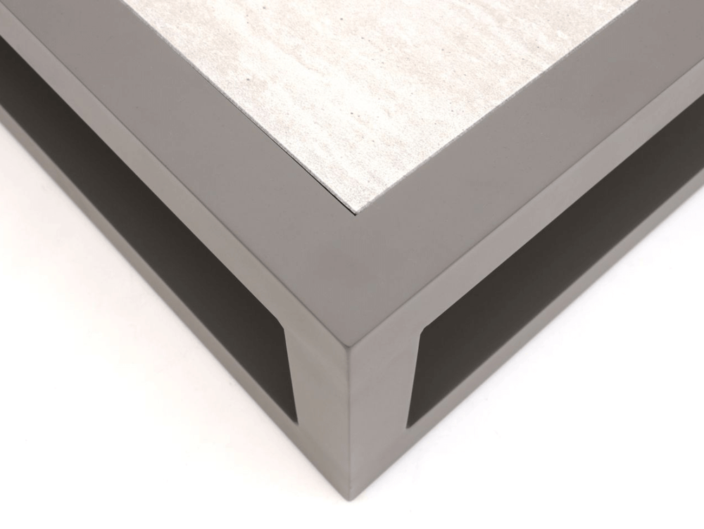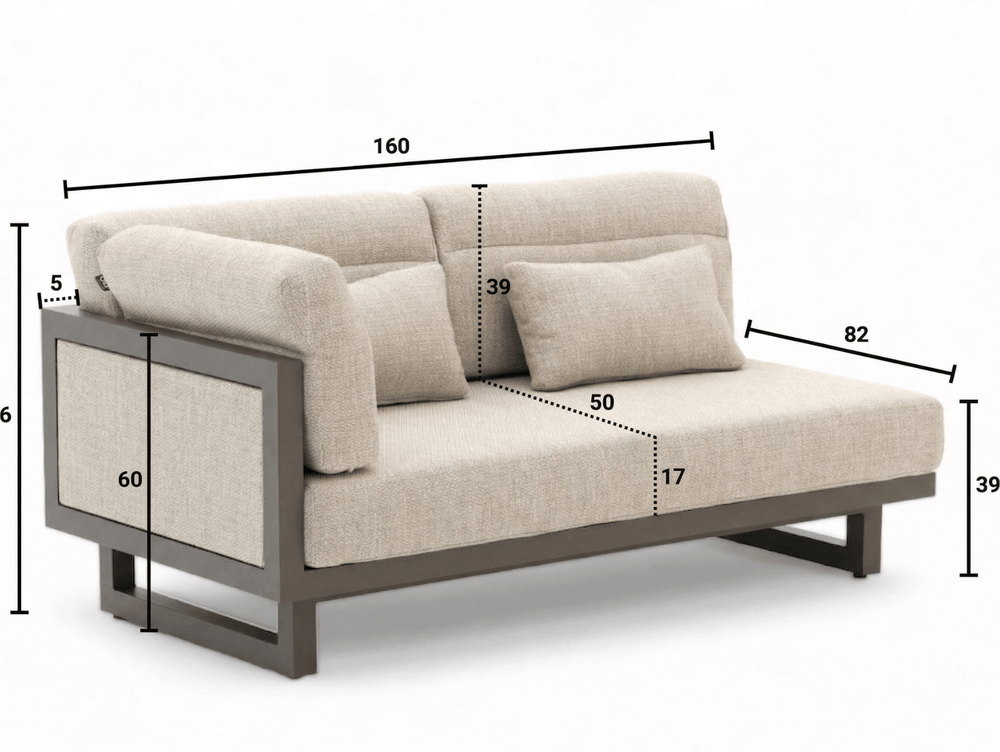 • Uniek Tafelconcept: De Travertino keramieken bladen hebben de warme uitstraling van natuursteen, maar zijn krasvast en hittebestendig. Gebruik de bijzettafel over de grote tafel heen of schuif de bankdelen iets uit elkaar voor een stijlvol tussenplateau.