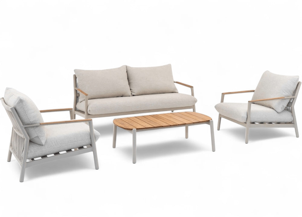 Creëer deze zomer een stijlvolle en comfortabele buitenruimte met de Belito Julia Loungeset. Bestel eenvoudig online bij Loungesetland en profiteer van snelle levering en uitstekende service. Heb je vragen of wil je de set in het echt bekijken? Bezoek onze showroom of neem contact met ons op!